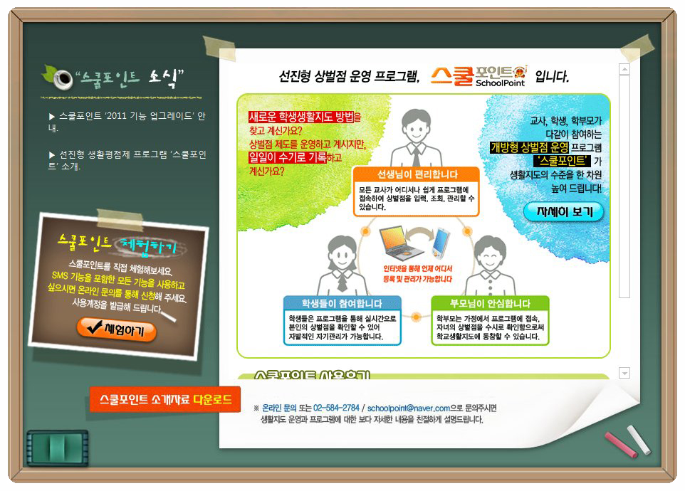 공지사항 [공지] SMS 기능 업그레이드 개편 안내 [201.. 안녕하세요 스쿨포인트입니다. 상벌점SMS 이외의 '일반' SMS를 자유롭게 발송할 수 있는 <자유공지 SMS> 기능이 쉽고 편하게 사용할 수 있도록 대폭 개편되었습니다. 업그레이드된 <자유공지 SMS> 기능은 메뉴 명.. [공지] SMS 발신번호 사전등록 제도 안내 [20.. 안녕하세요 스쿨포인트입니다. 2015년 10월 16일부터는 교육과학기술부에 사전등록된 발신번호만 SMS 사용이 가능 합니다. 전기통신사업법 제84조에 의거 거짓으로 표시된 전화번호로 인한 이용자 피해 예방을 위해서 이용..
